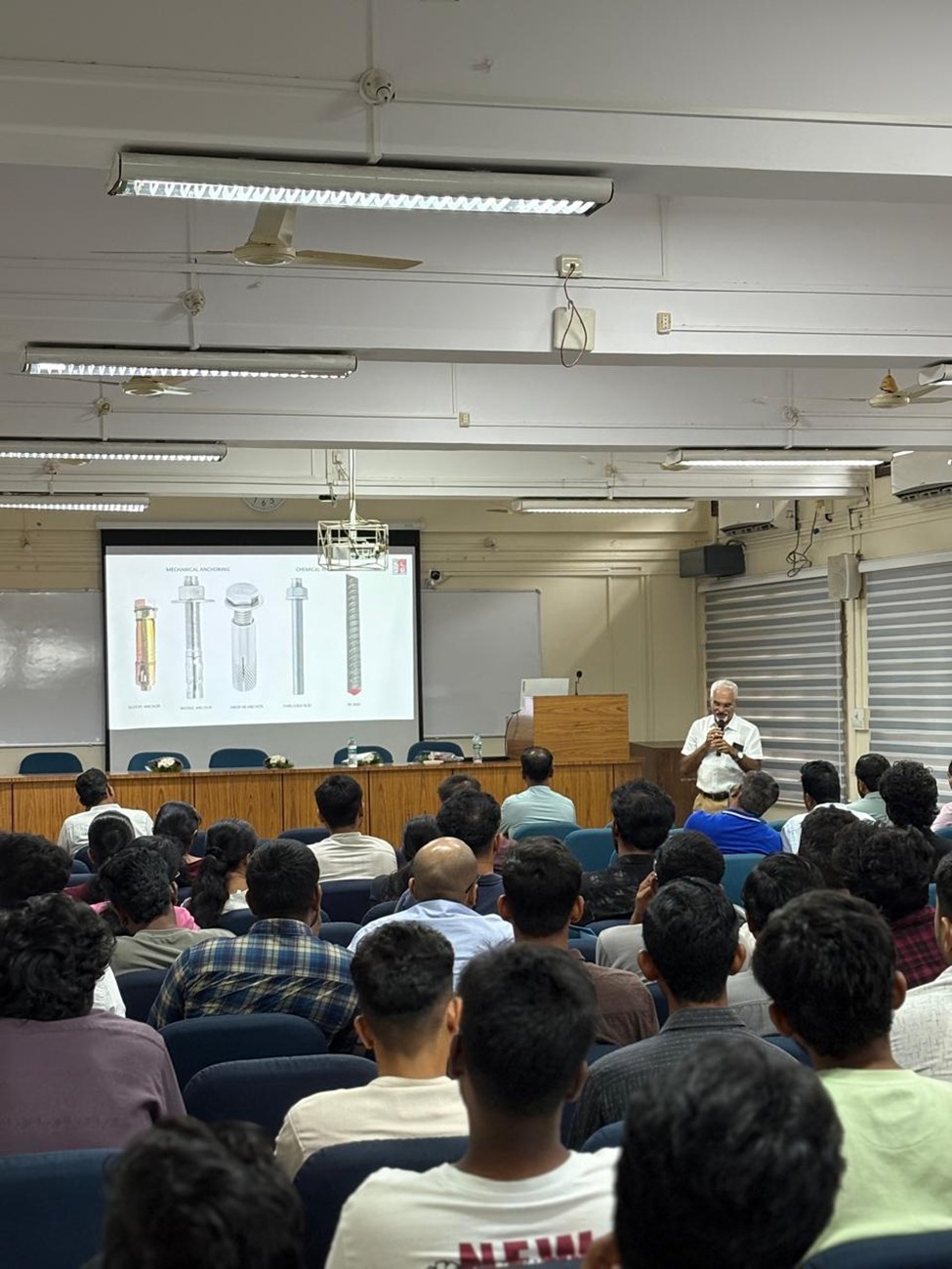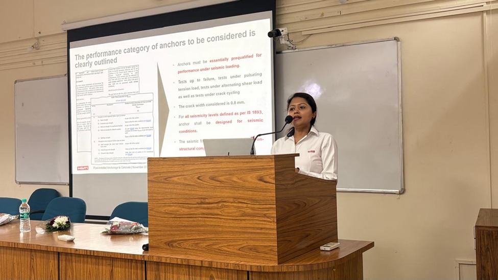 The sessions covered a wide spectrum from the fundamentals of structural strengthening and retrofitting to code-compliant design of post-installed connections for safer and more resilient structures. Post-installed systems form an integral part of structural connections, whether Concrete-to-Concrete or Steel-to-Concrete. We also discussed new shear strengthening solutions for shear-deficient concrete members using post-installed shear reinforcement systems. In the second half, we conducted two highly engaging sessions: A design demonstration using PROFIS Engineering software, and A hands-on workshop where students practiced the installation of post-installed anchors.